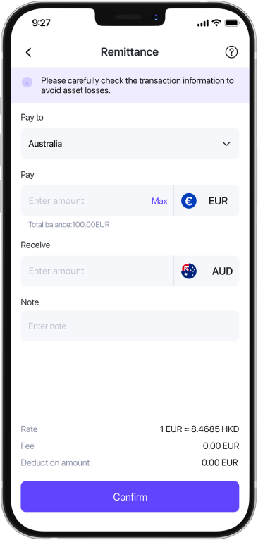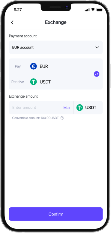 Top up your account with SEPA EUR transfer. Fast and secure